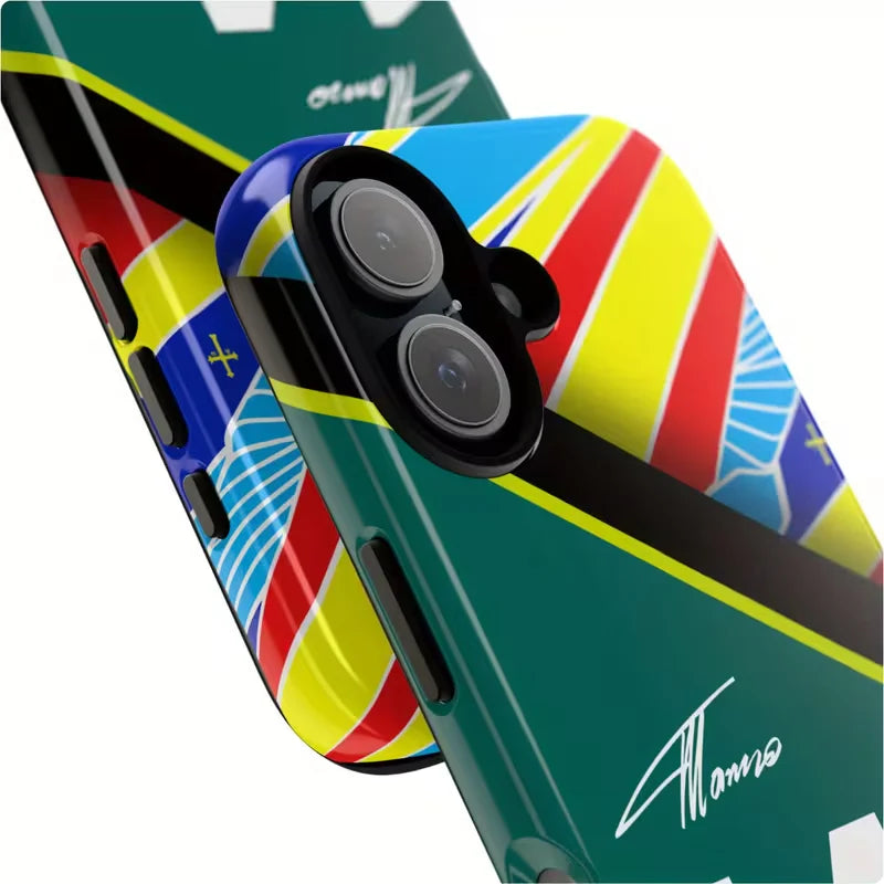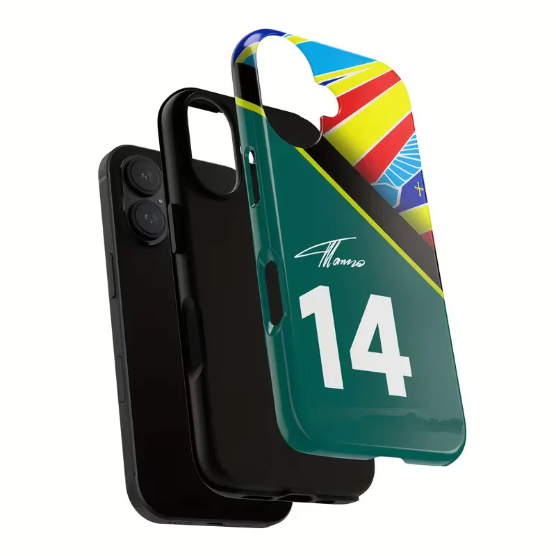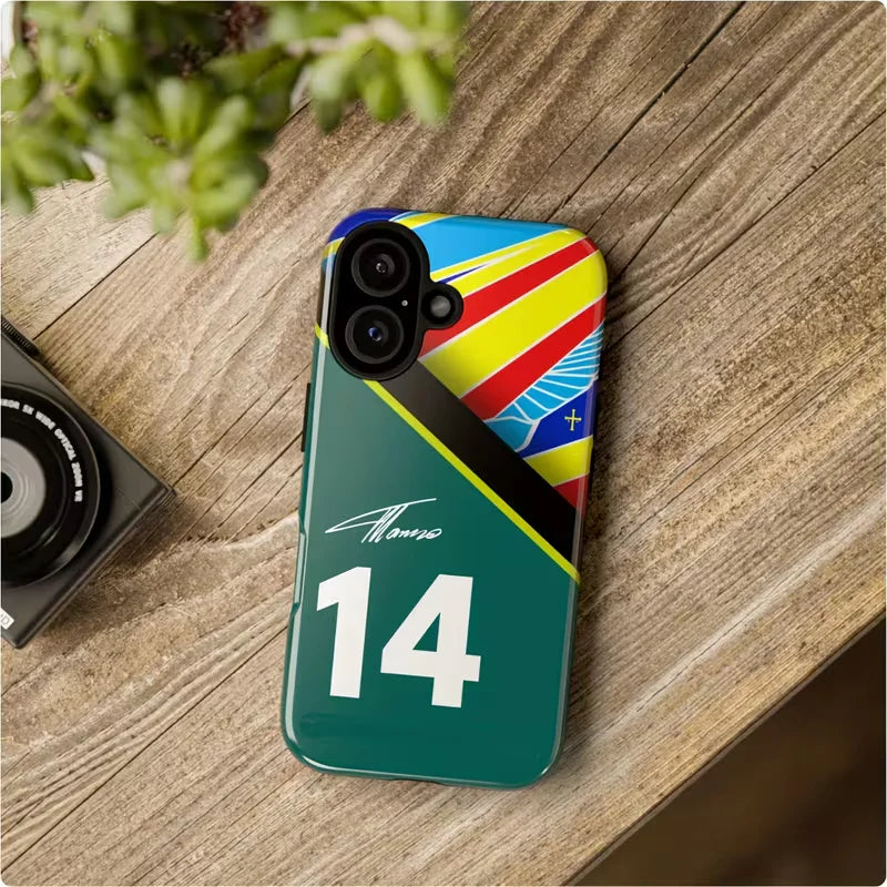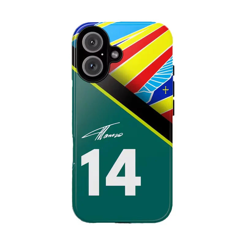 Apex Fourteen is the ultimate case for fans of speed, precision, and racing heritage. Featuring the bold number 14 paired with dynamic racing stripes in vibrant blue, yellow, red, and black, this case captures the electrifying spirit of motorsport.