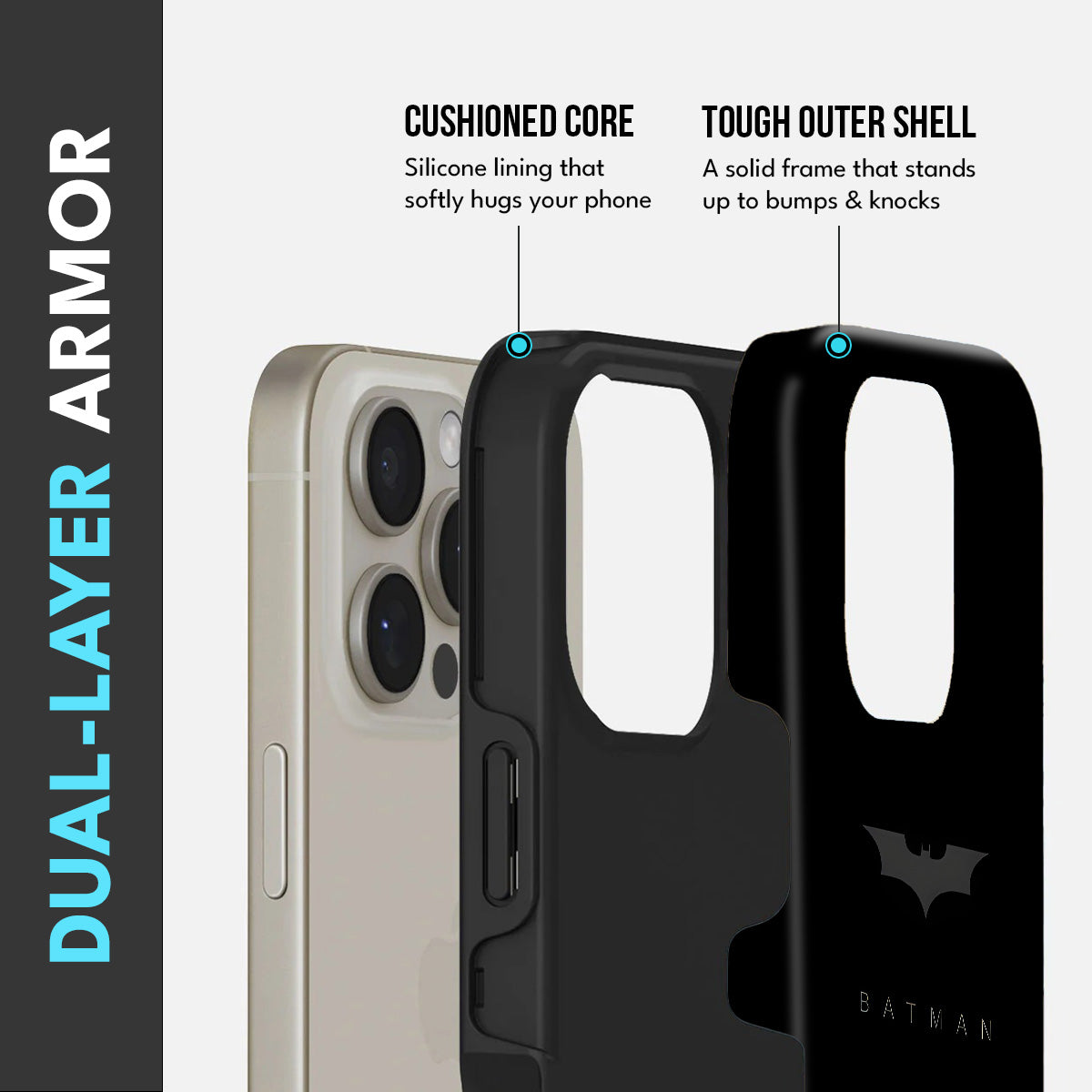 • Dual-Layer Protection: The phone case features silicon cushioning inside and a durable PC exterior outside.