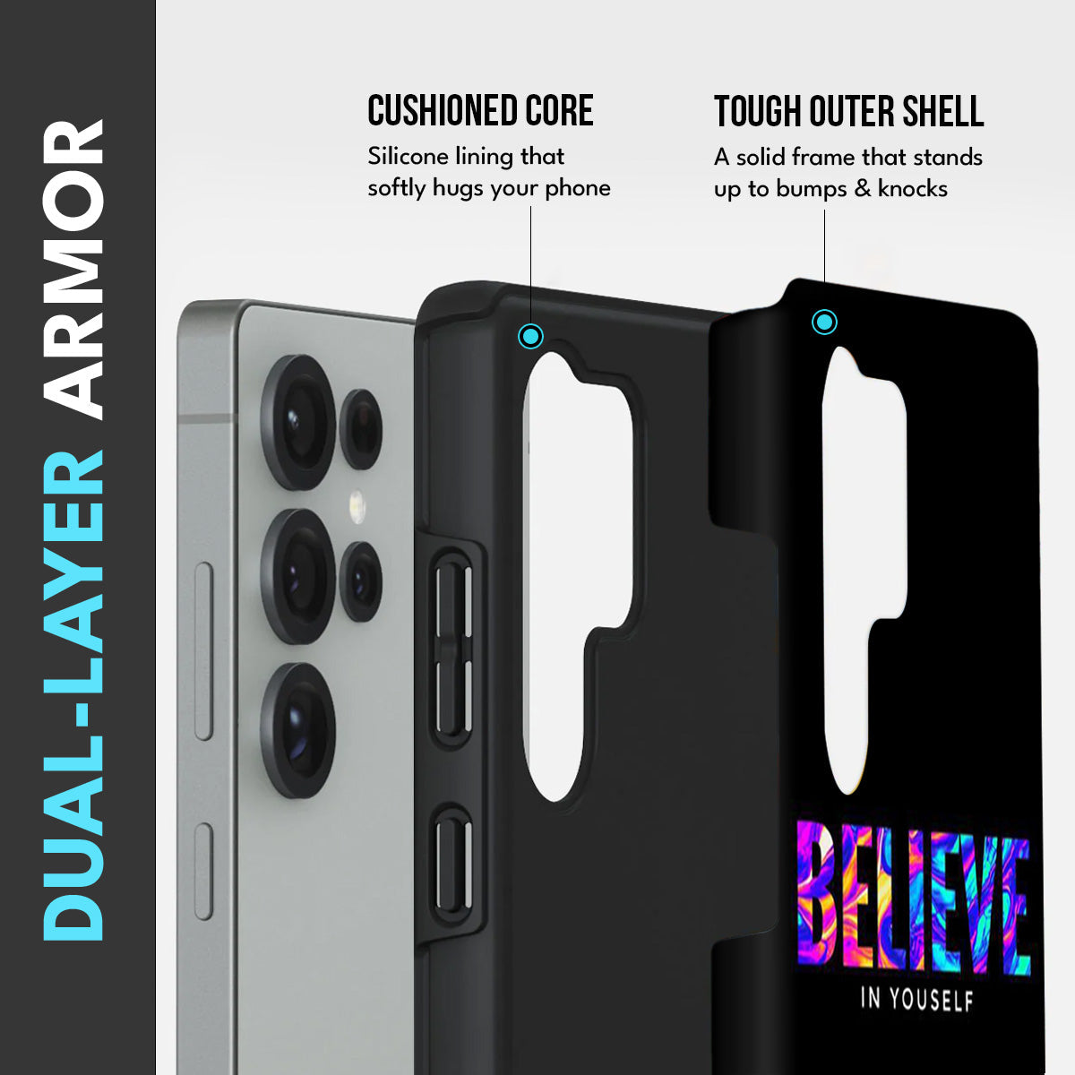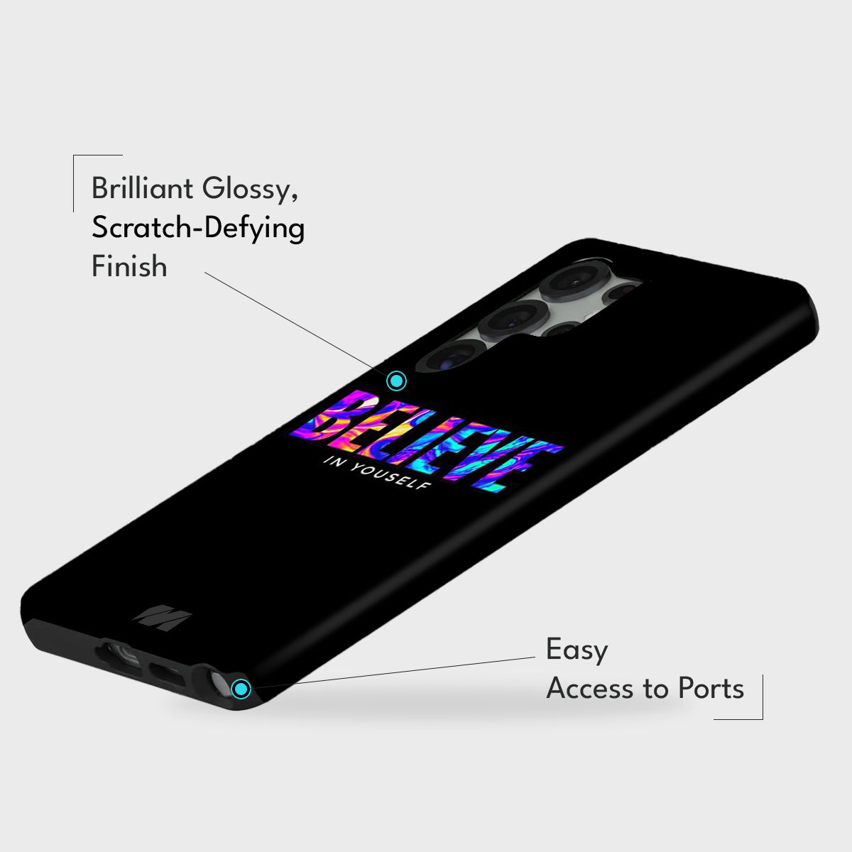 Step into your power with Cosmic Confidence, the phone case designed to remind you that everything you need is already within you. Featuring a bold holographic BELIEVE IN YOURSELF graphic that shifts and shimmers with every angle, this case turns your device into a statement of strength, self-trust, and unstoppable energy.