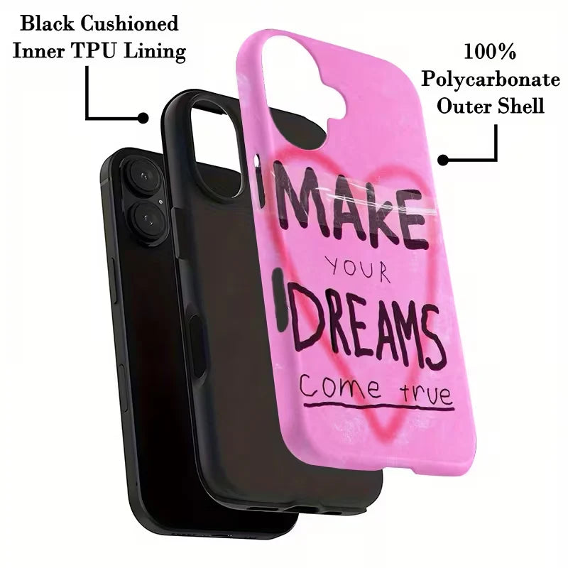 The Dream Maker Case is your daily dose of motivation wrapped in a charming pink aesthetic. With its handwritten-style typography and soft heart backdrop, this case is designed to remind you to chase your goals every time you pick up your phone.