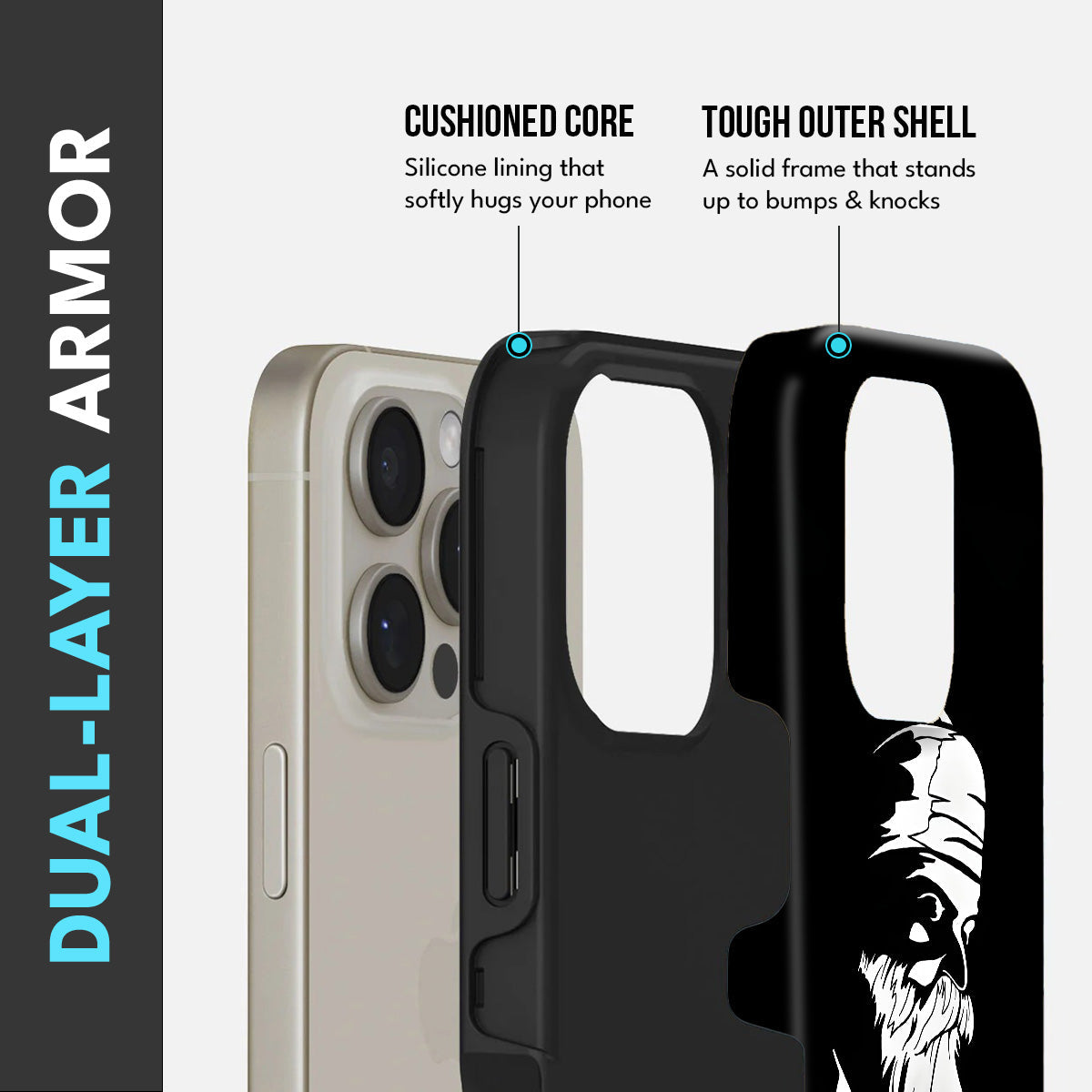 • Dual-Layer Protection: The phone case features silicon cushioning inside and a durable PC exterior outside.