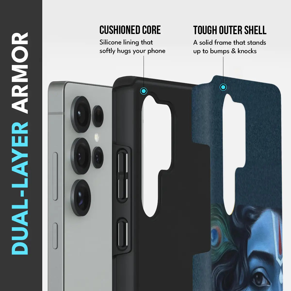 • Dual-Layer Protection: The phone case features silicon cushioning inside and a durable PC exterior outside.