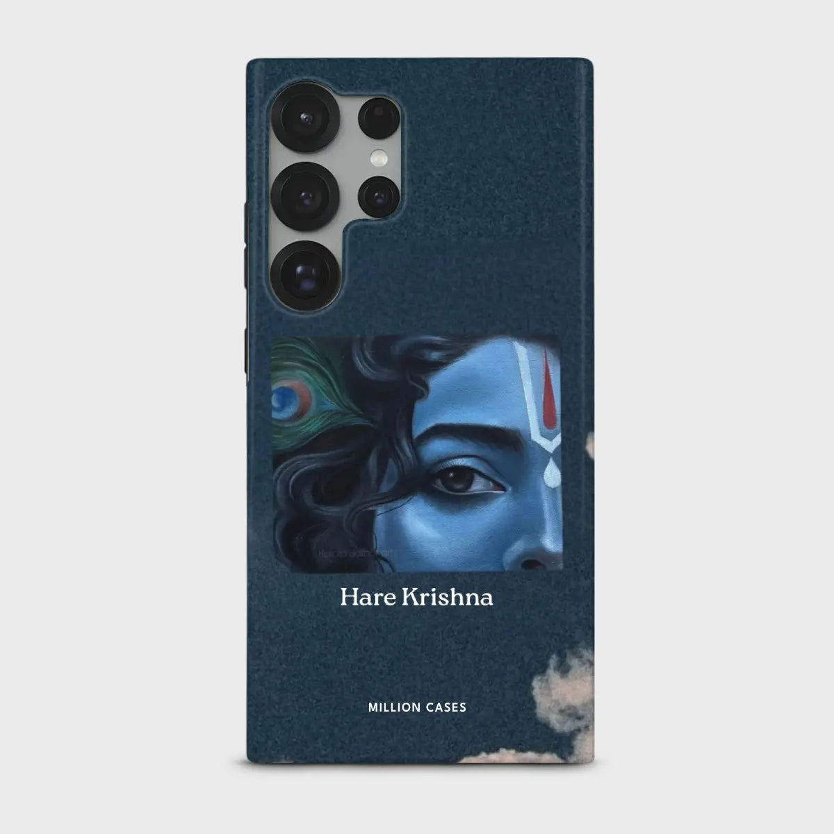 Experience serenity in every glance with the Gentle Divinity phone case. Featuring a beautifully detailed artistic portrait of Lord Krishna’s calm and compassionate gaze, this case brings together spirituality and modern aesthetics in the most graceful way. The deep denim-textured backdrop adds an earthy richness, while Krishna’s half-face artwork—complete with the iconic peacock feather and tilak—creates a powerful yet soothing visual presence.