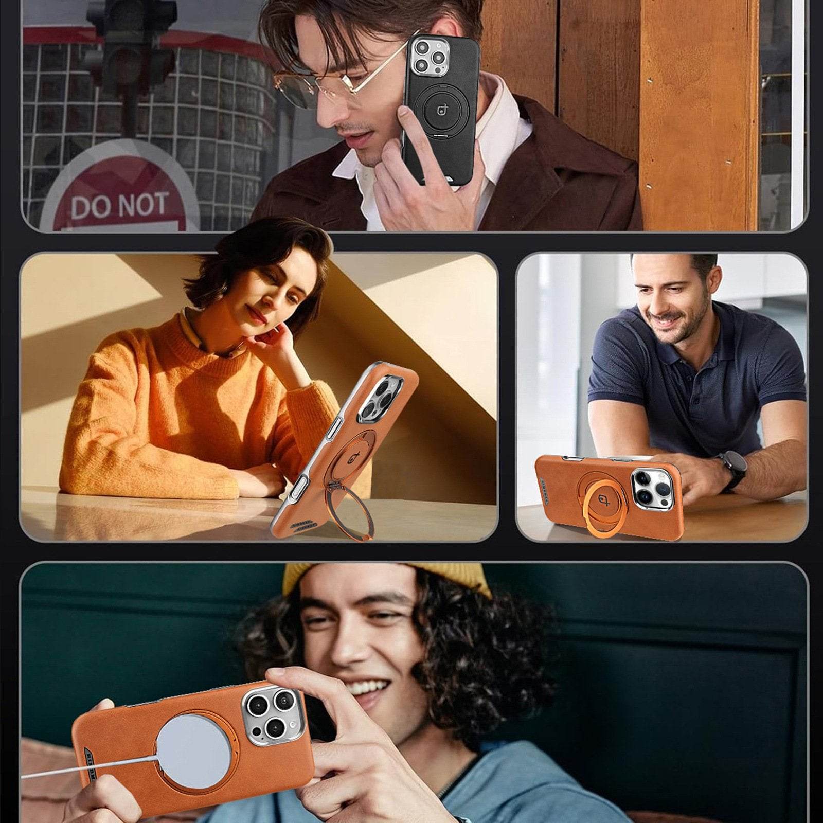 Engineered for daily performance and elevated style, this leather case offers magnetic functionality with smooth grip and complete device protection. The built-in ring stand and MagSafe-ready design make it as versatile as it is secure.