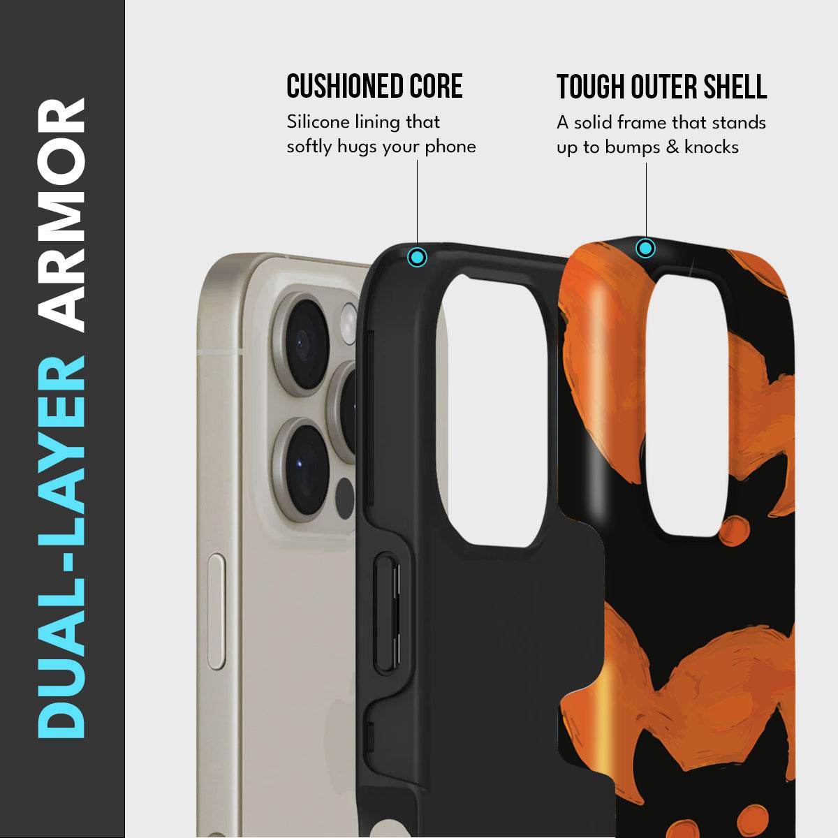 • Dual-Layer Protection: The phone case features silicon cushioning inside and a durable PC exterior outside.