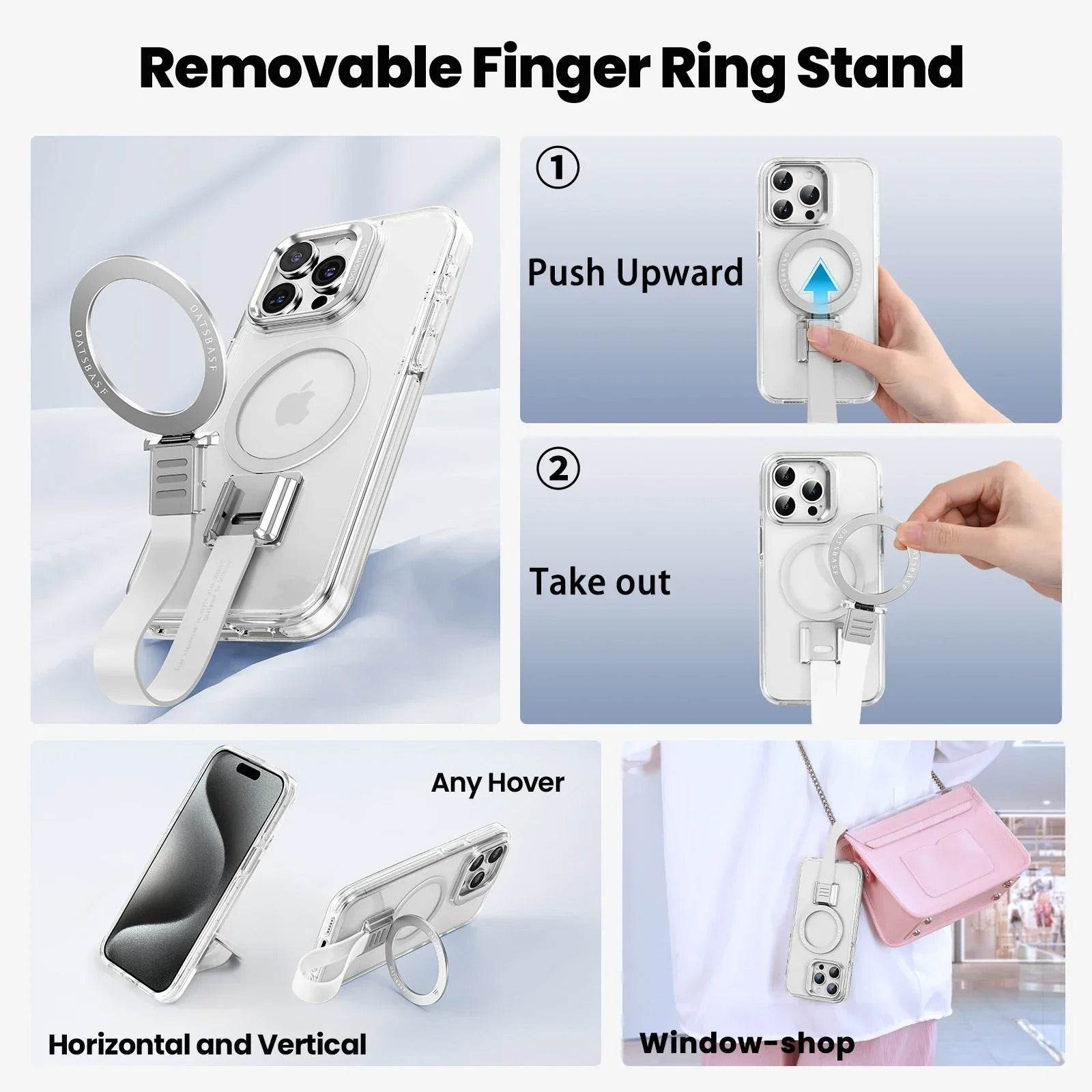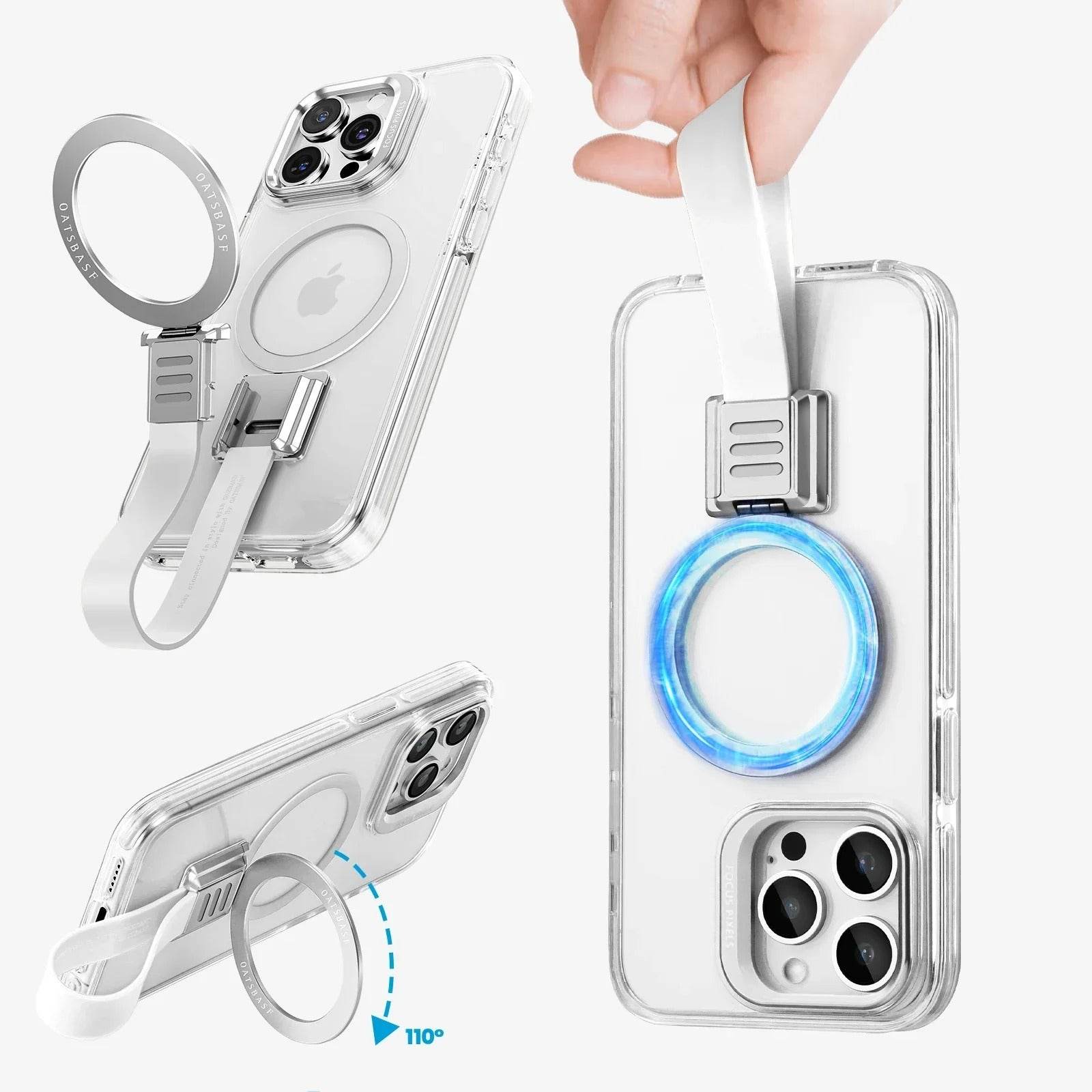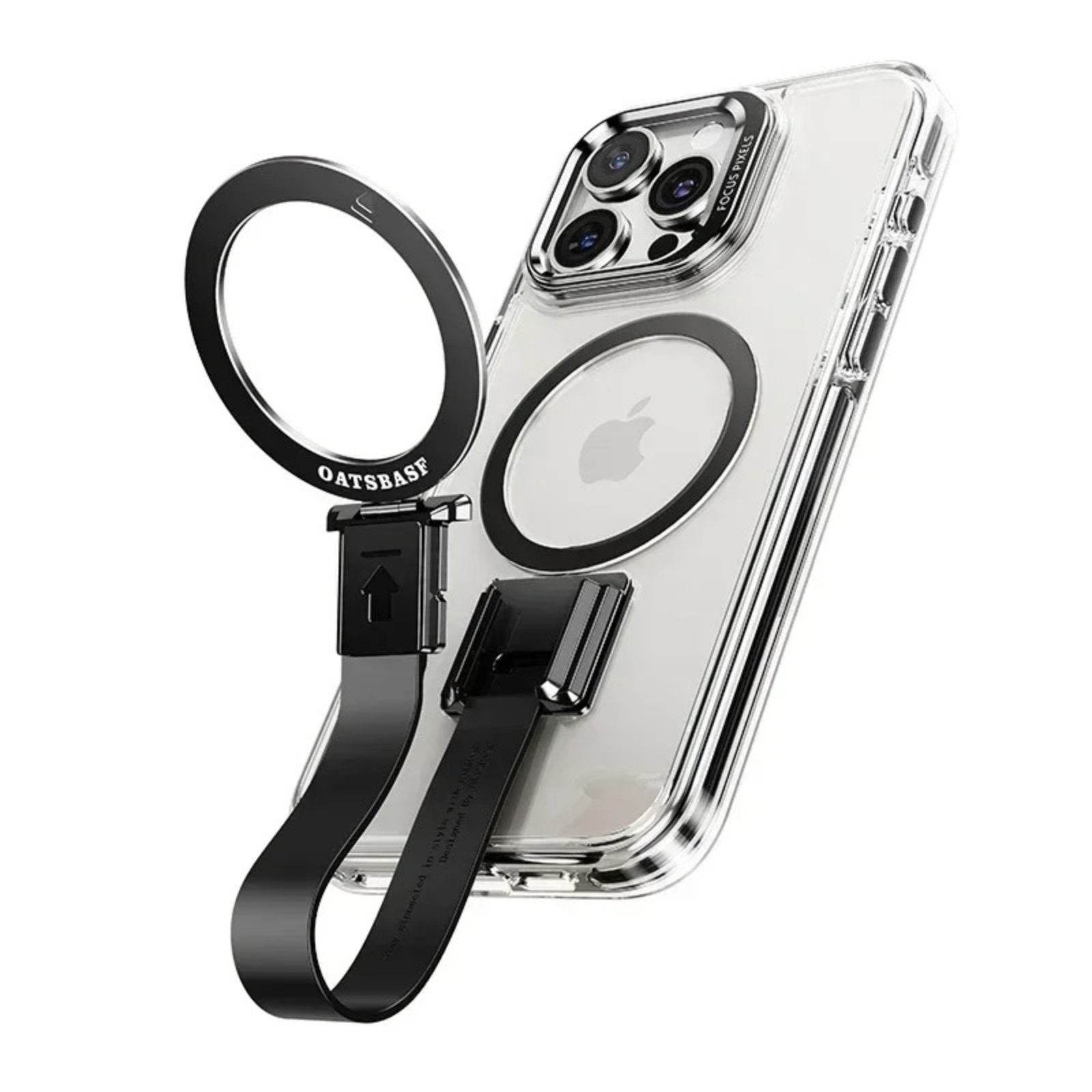 Experience the perfect balance of style, security, and versatility with this transparent MagSafe-compatible case featuring a detachable grip loop. Designed for modern convenience, the removable loop enhances your grip, reduces accidental drops, and doubles as a stand when needed.