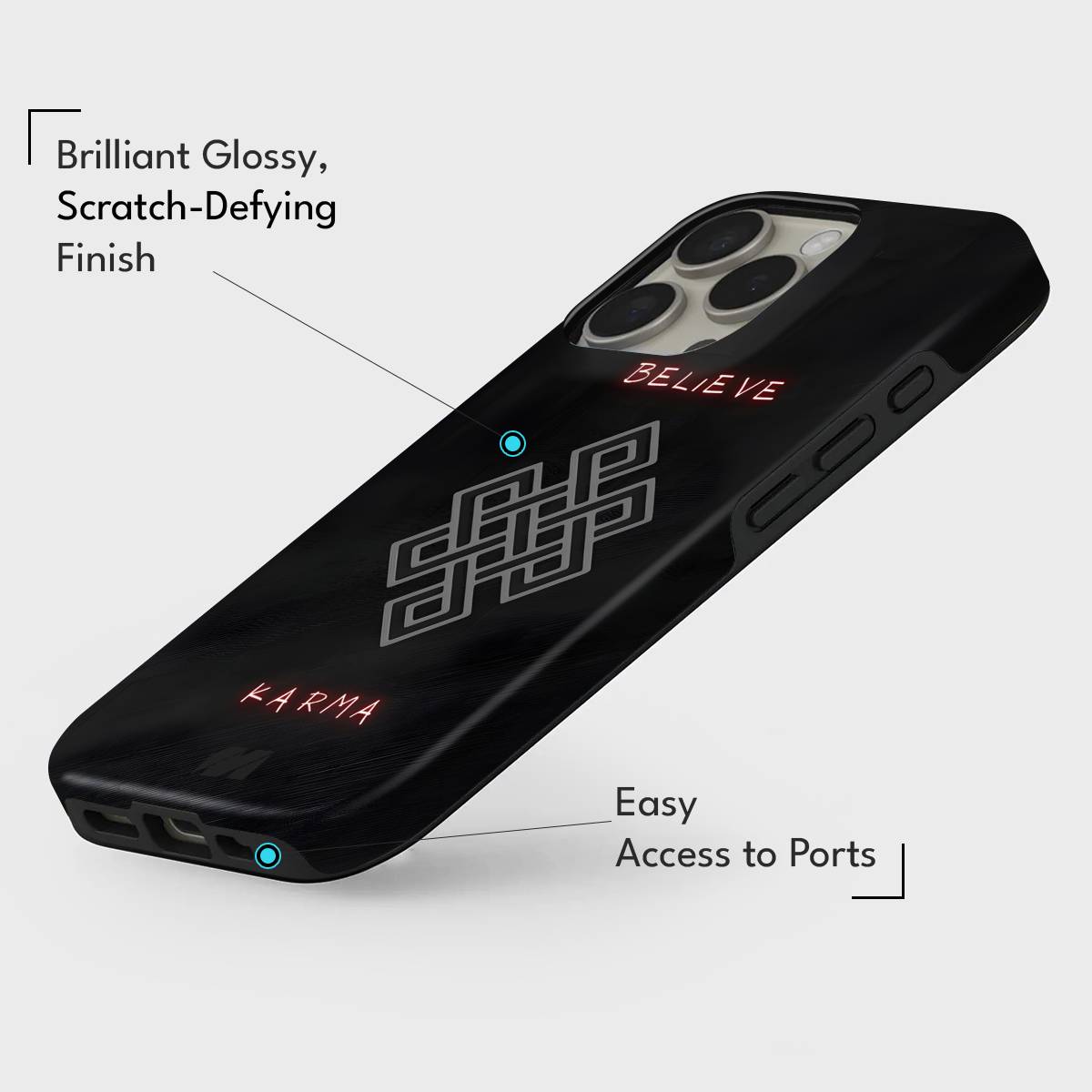 Karma Weave brings a powerful fusion of symbolism and style to your device. Designed with a striking eternal-knot motif and glowing text accents, this case represents connection, destiny, and the flow of energy through life. The deep black backdrop enhances the intricate weave pattern, making it stand out with a bold yet spiritual presence.