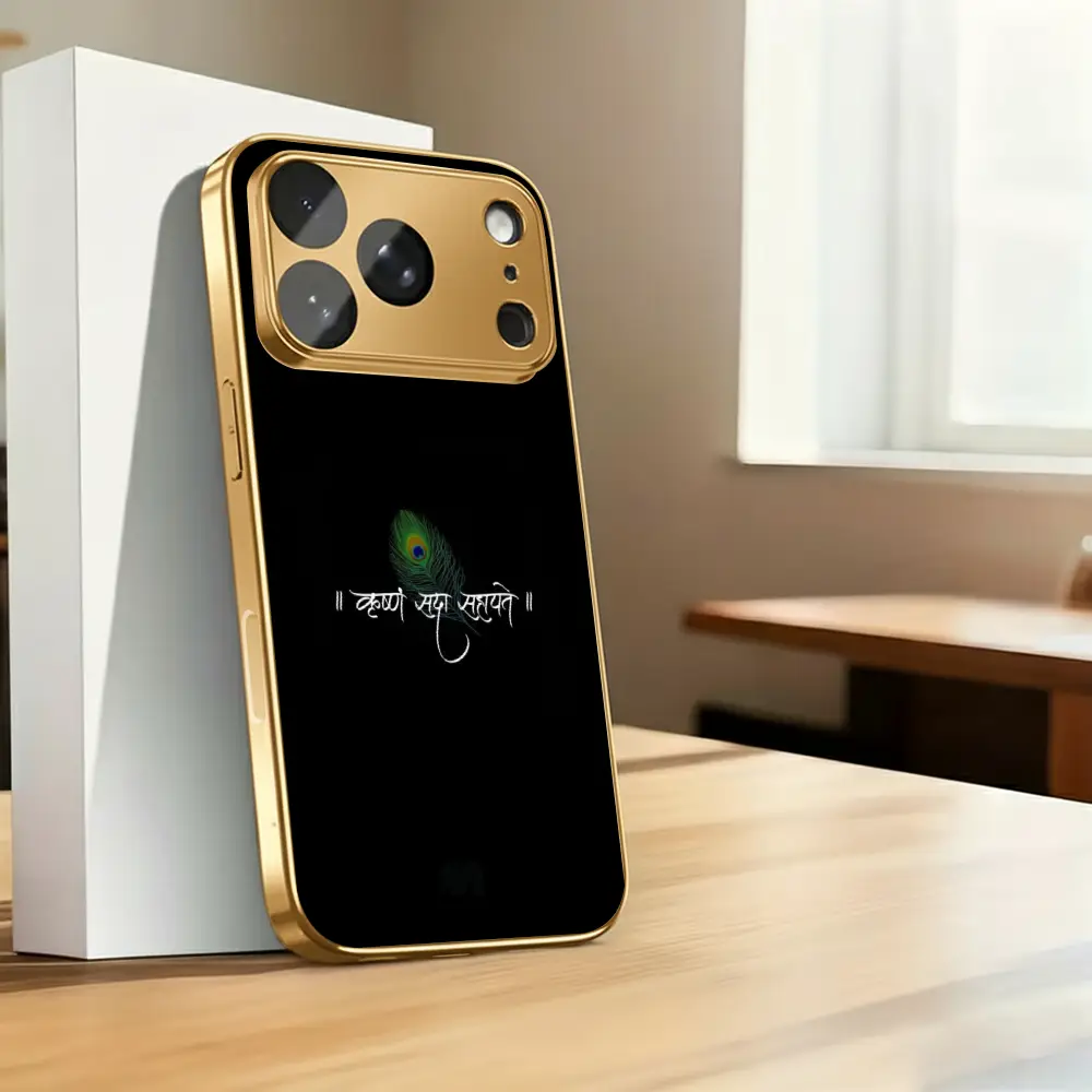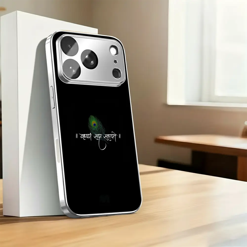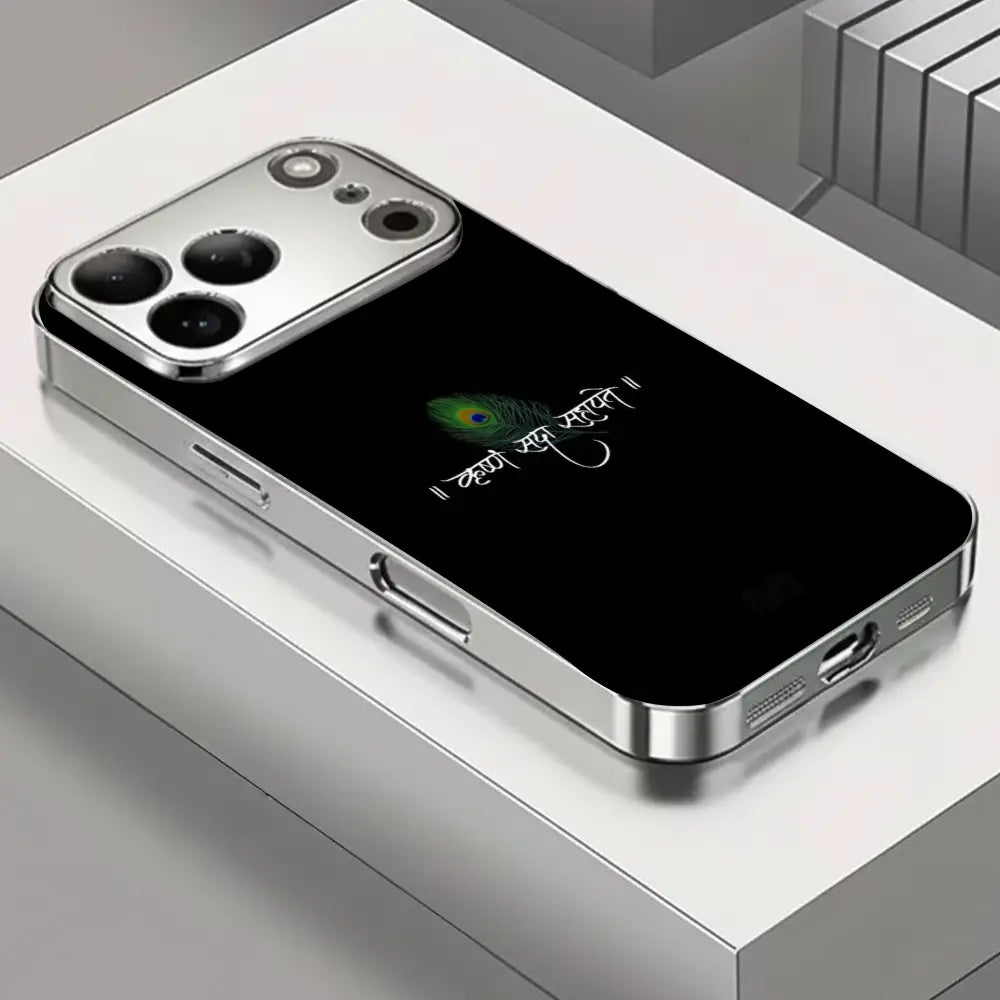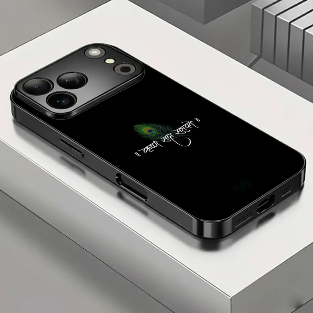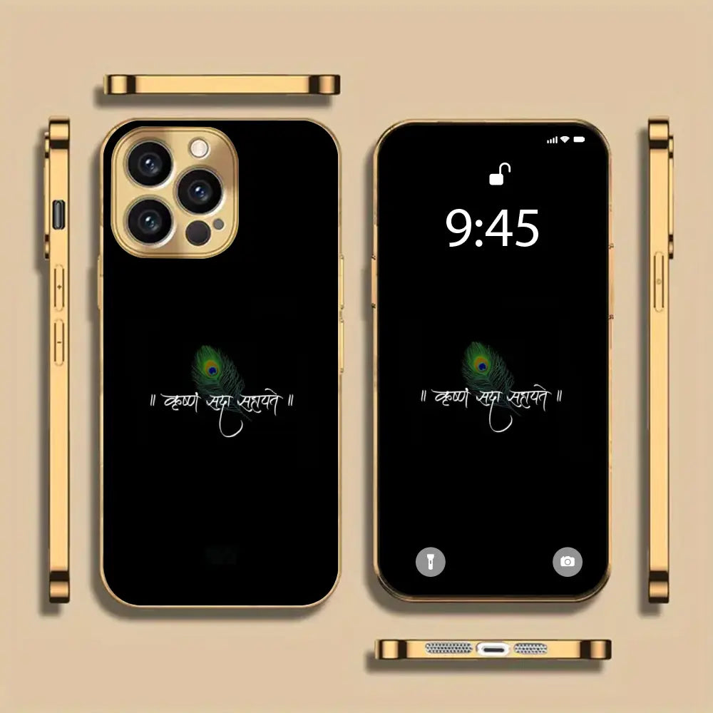 Experience divinity in every glance with the Krishna Script Aura case, designed for those who carry faith close to their heart. Featuring a minimal yet powerful black background, this case showcases an elegant Hindi Krishna script adorned with a beautifully detailed peacock feather—the timeless symbol of Lord Krishna’s grace, charm, and wisdom.