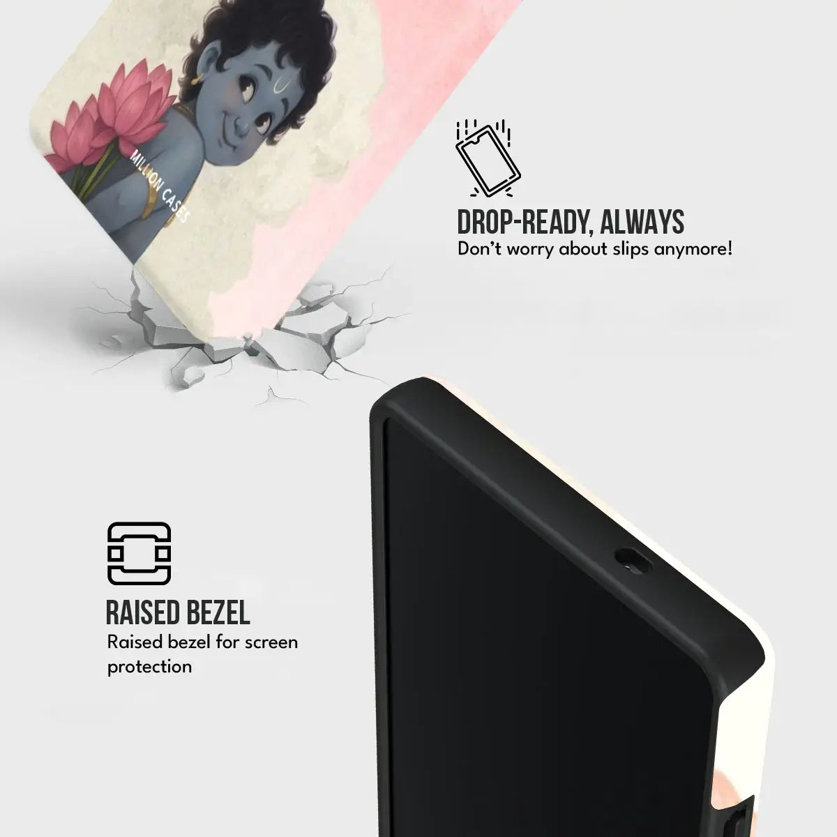 Embrace purity, peace, and divine elegance with the Lotus Krishna Case. Featuring an adorable baby Krishna holding a vibrant lotus, this design blends spiritual beauty with soft pastel artistry. The gentle watercolor background adds a dreamy touch, while Krishna’s playful smile brings warmth and positivity to your everyday moments.
