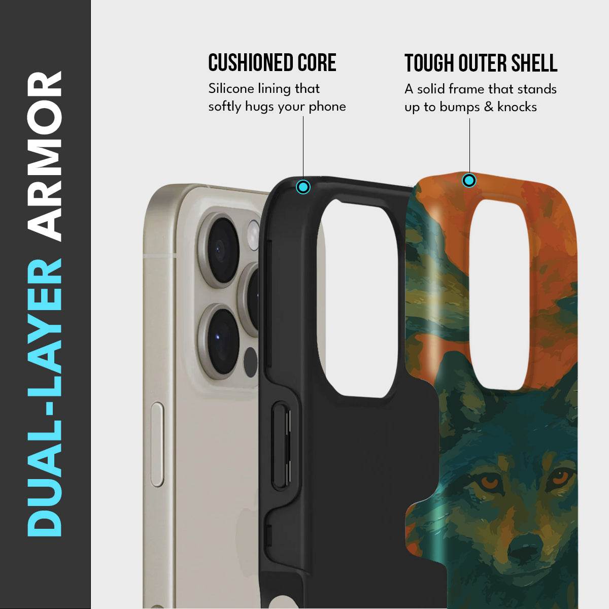 • Dual-Layer Protection: The phone case features silicon cushioning inside and a durable PC exterior outside.