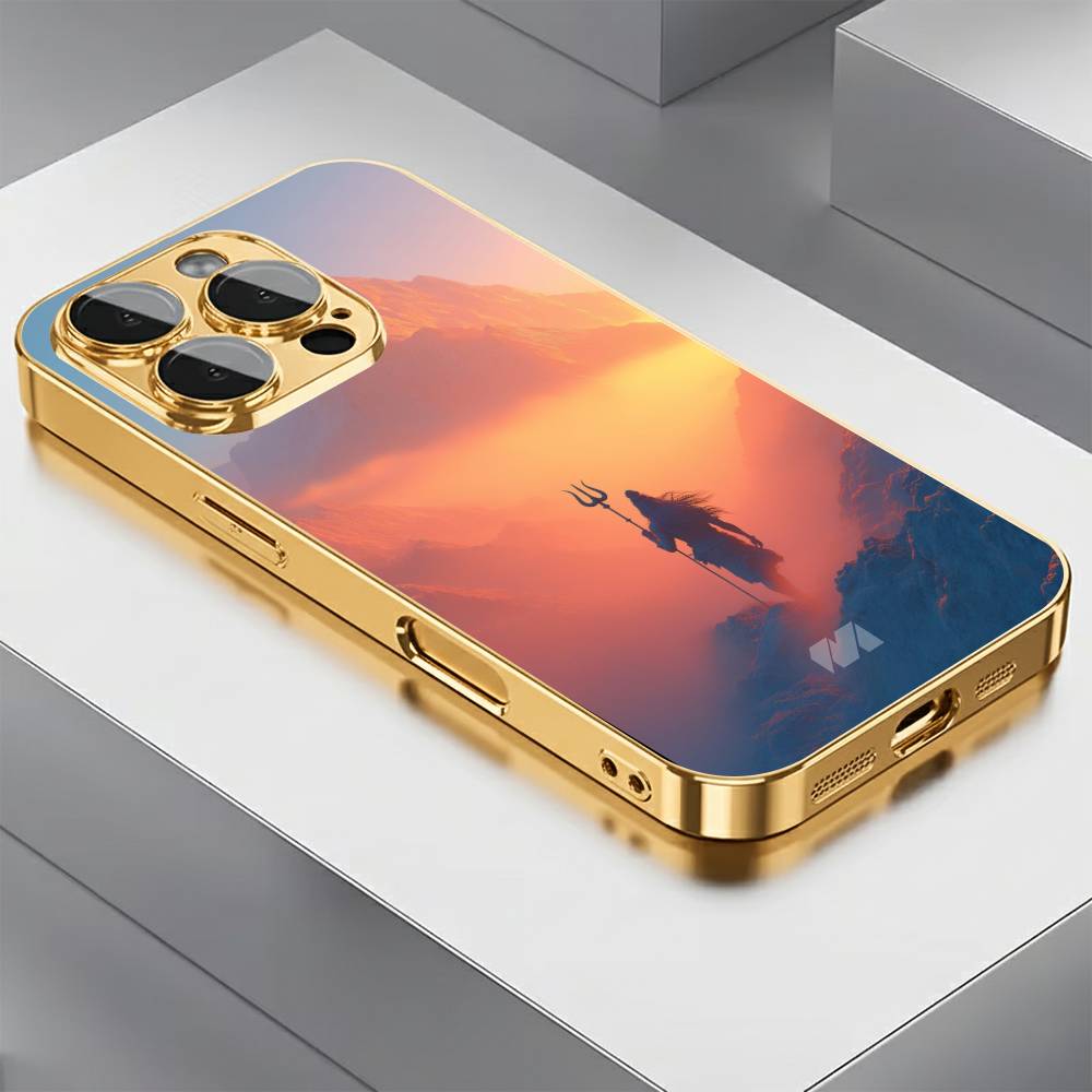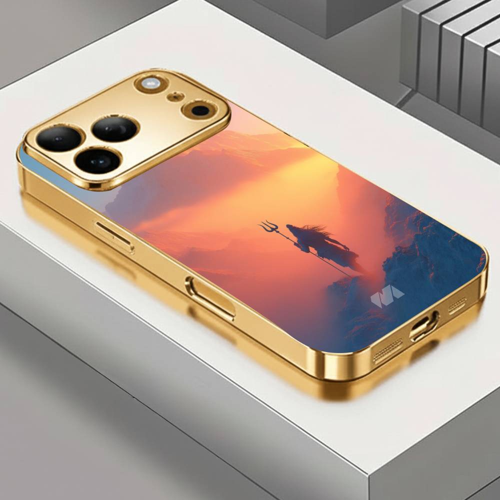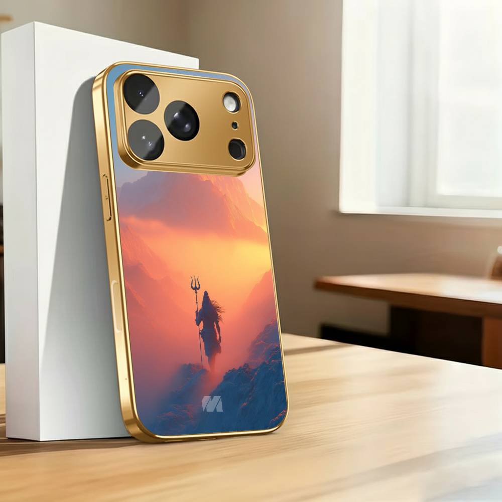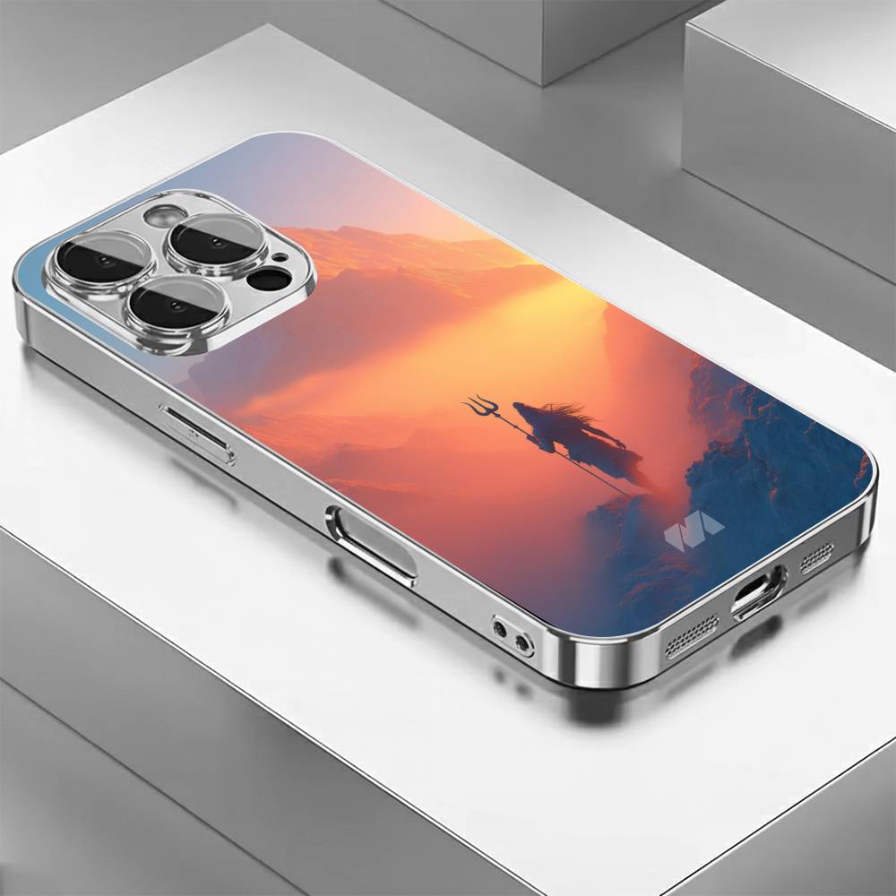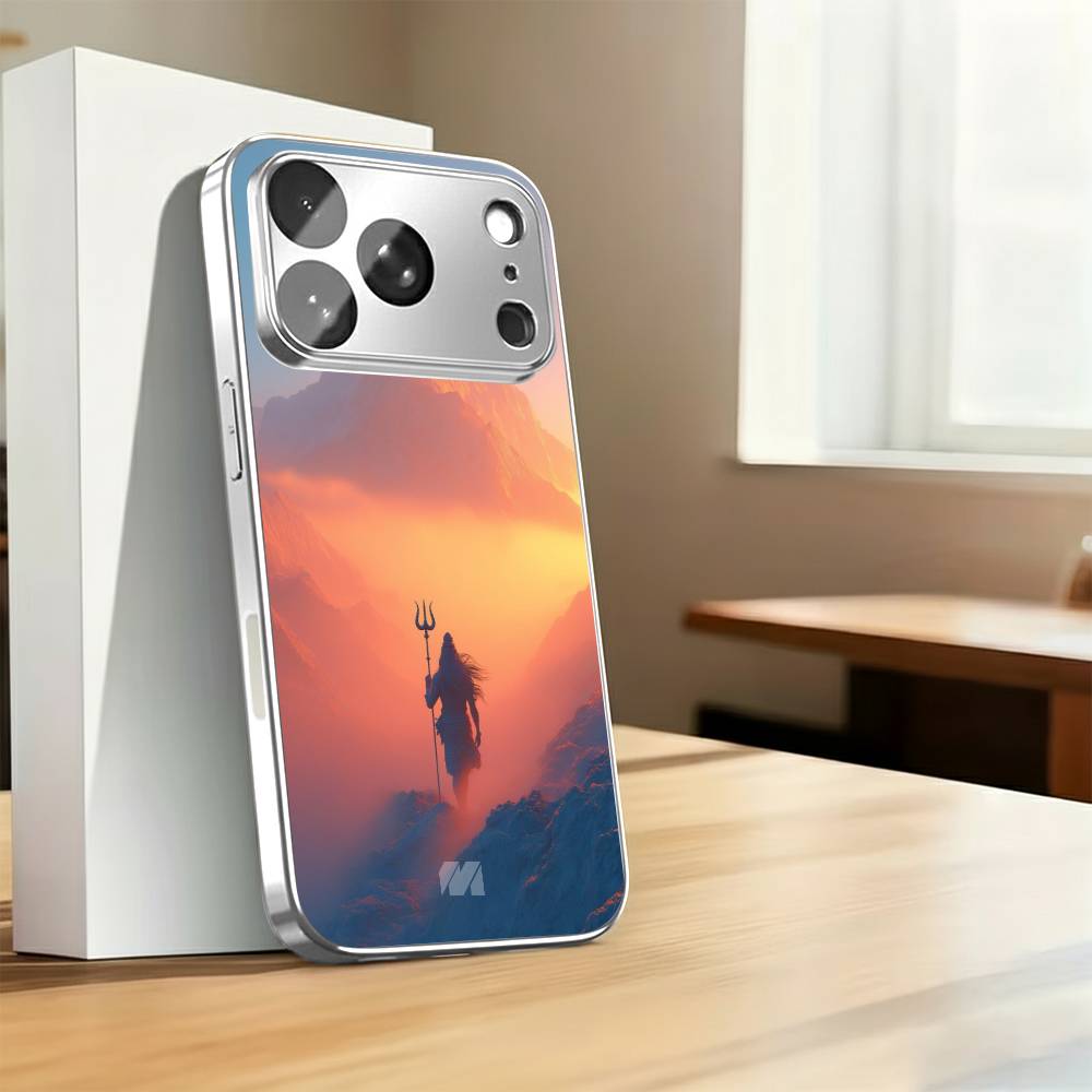Step into divine serenity with the Mahakal Sky Silhouette case, featuring a breathtaking depiction of Lord Shiva standing tall against a radiant horizon. The dramatic blend of warm sunset hues and cool mountain shadows creates a mystical contrast, highlighting Mahadev’s iconic Trishul and flowing Jata.