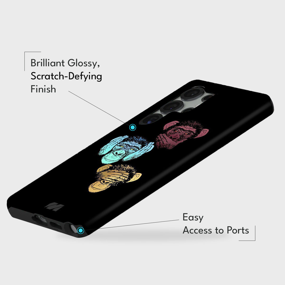 Bring wisdom and personality to your phone with the Moral Monkeys Case. Featuring the iconic “See No Evil, Hear No Evil, Speak No Evil” monkeys illustrated in bold, colorful detail, this case turns a classic moral message into playful modern art. Each monkey pops against the sleek black background, creating a stylish design that’s both meaningful and eye-catching.