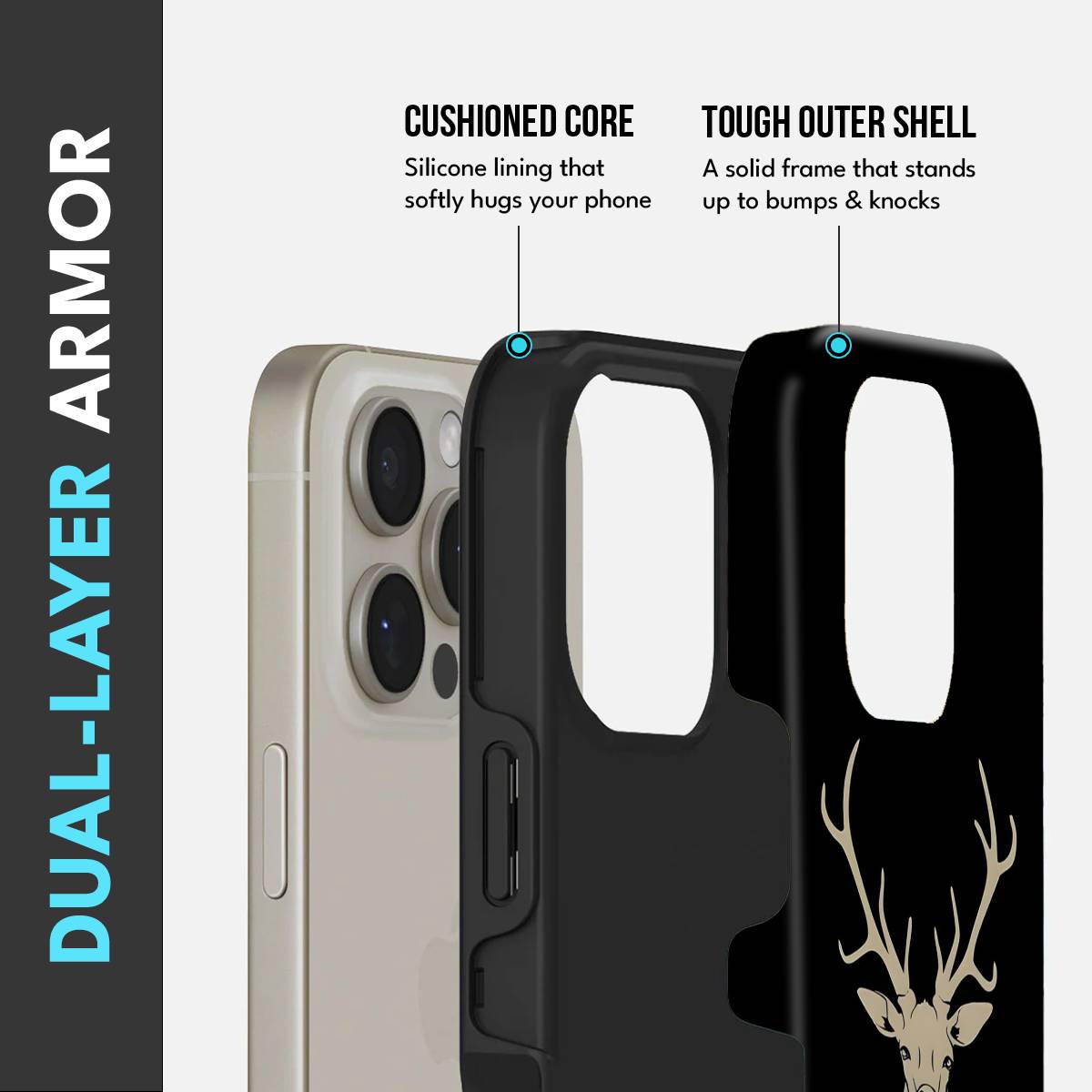 • Dual-Layer Protection: The phone case features silicon cushioning inside and a durable PC exterior outside.