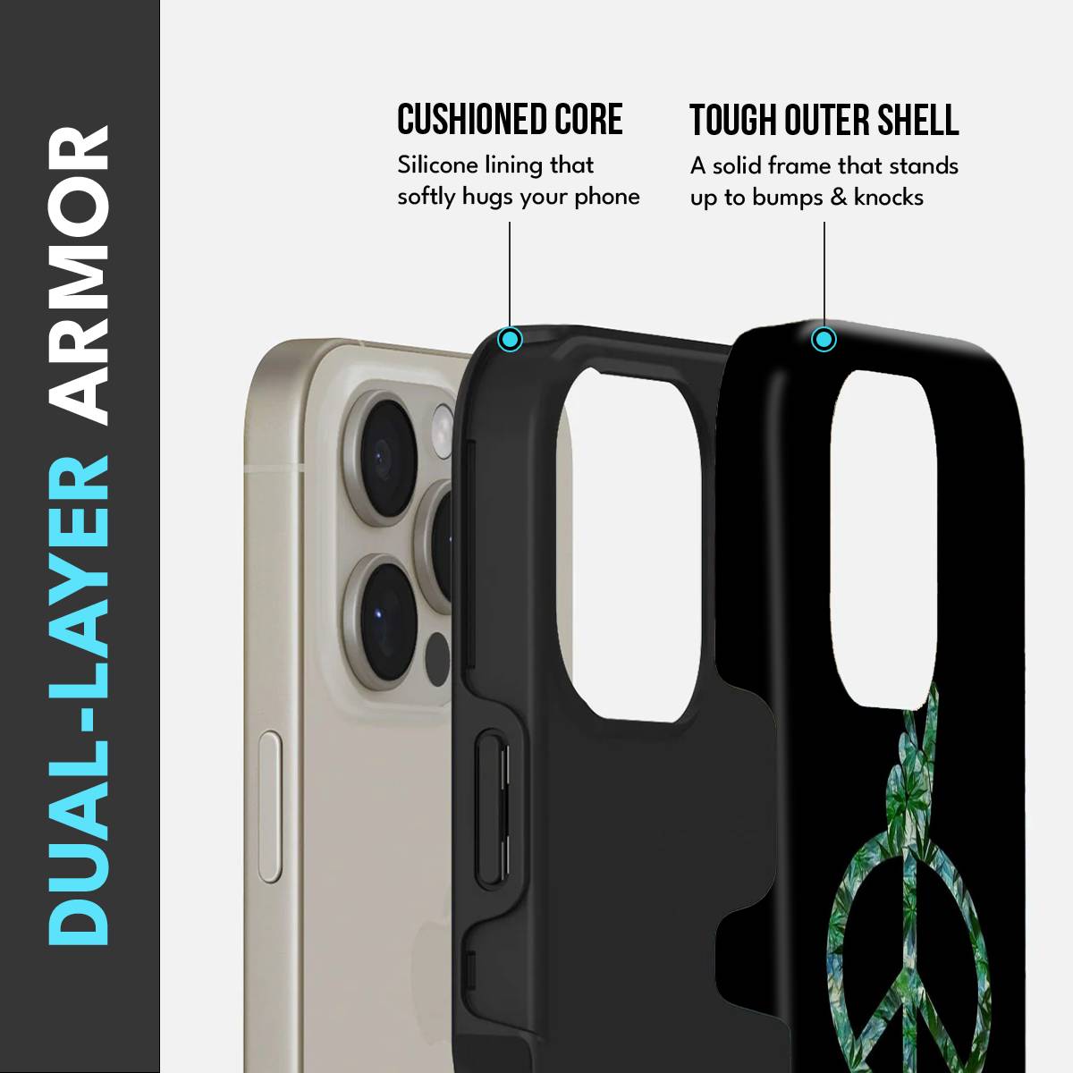 • Dual-Layer Protection: The phone case features silicon cushioning inside and a durable PC exterior outside.
