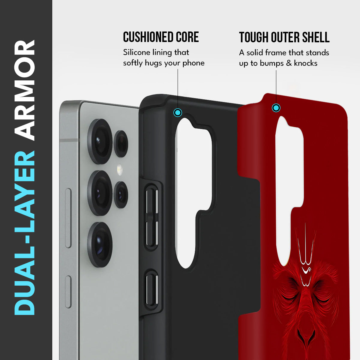 Embrace the perfect balance of strength and serenity with the Peaceful Warrior case. Featuring a refined, minimalistic depiction of Lord Hanuman with closed eyes and a centered tilak, this design symbolizes inner calm, divine focus, and unwavering power.