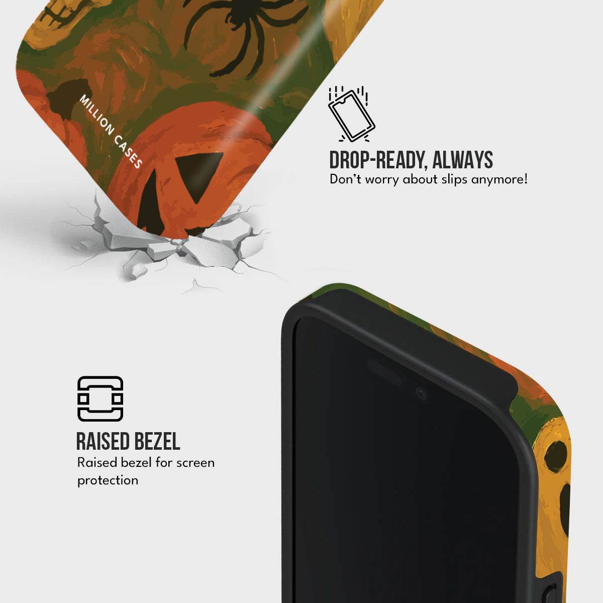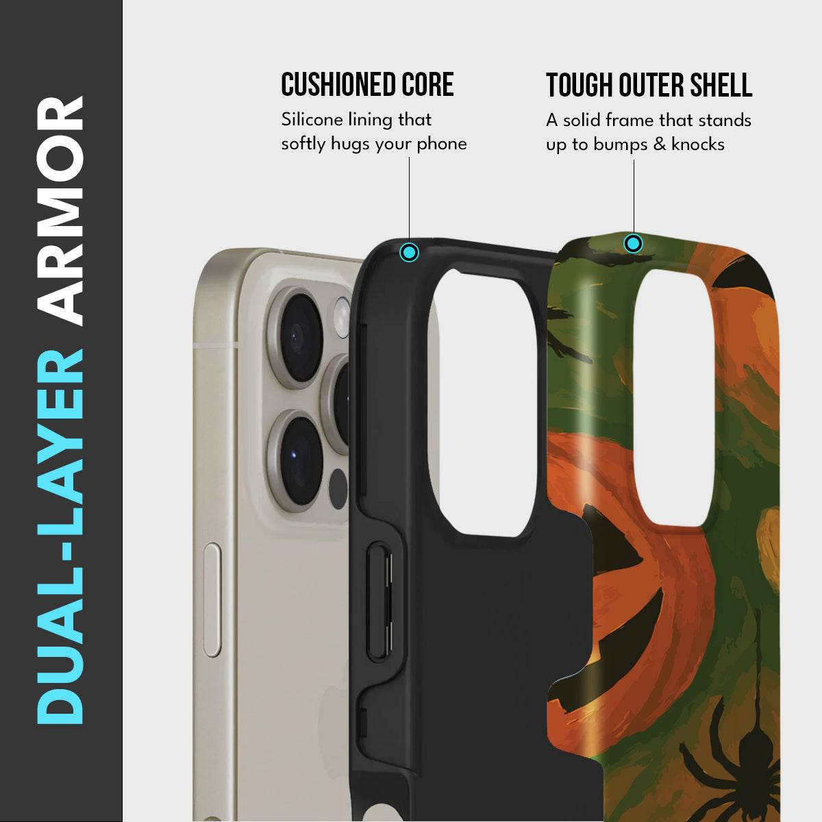 Unleash the spirit of Halloween every day with this Pumpkin Party design case. Featuring a bewitching blend of pumpkins, spiders, and ghostly bats, this design captures the eerie charm of the season—whether you prefer playful spooks or gothic allure.