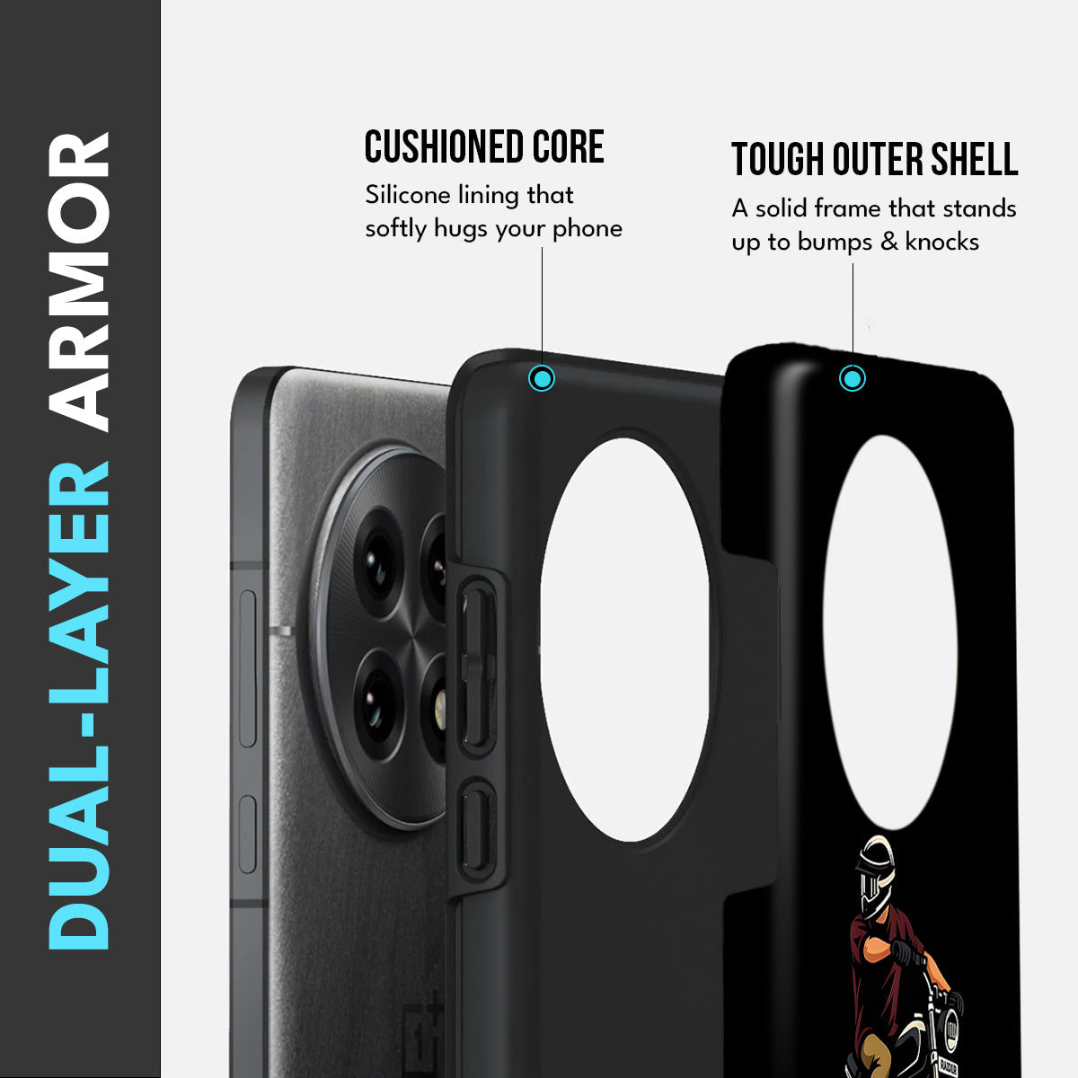 • Dual-Layer Protection: The phone case features silicon cushioning inside and a durable PC exterior outside.