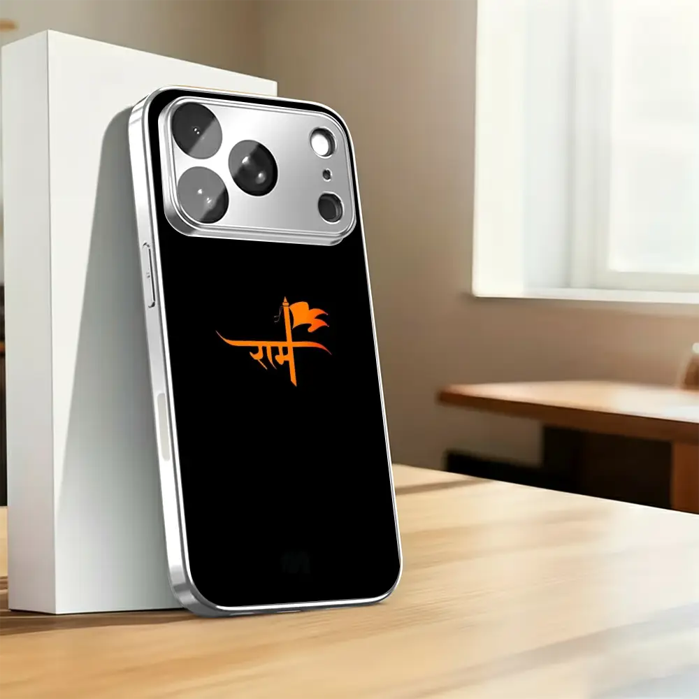 Honor your devotion with the Shree Ram Ji Signature Case, designed for those who carry faith close to their heart. This premium case features a bold saffron "राम" signature inscribed on a deep black backdrop, creating a powerful contrast that radiates divinity and strength.