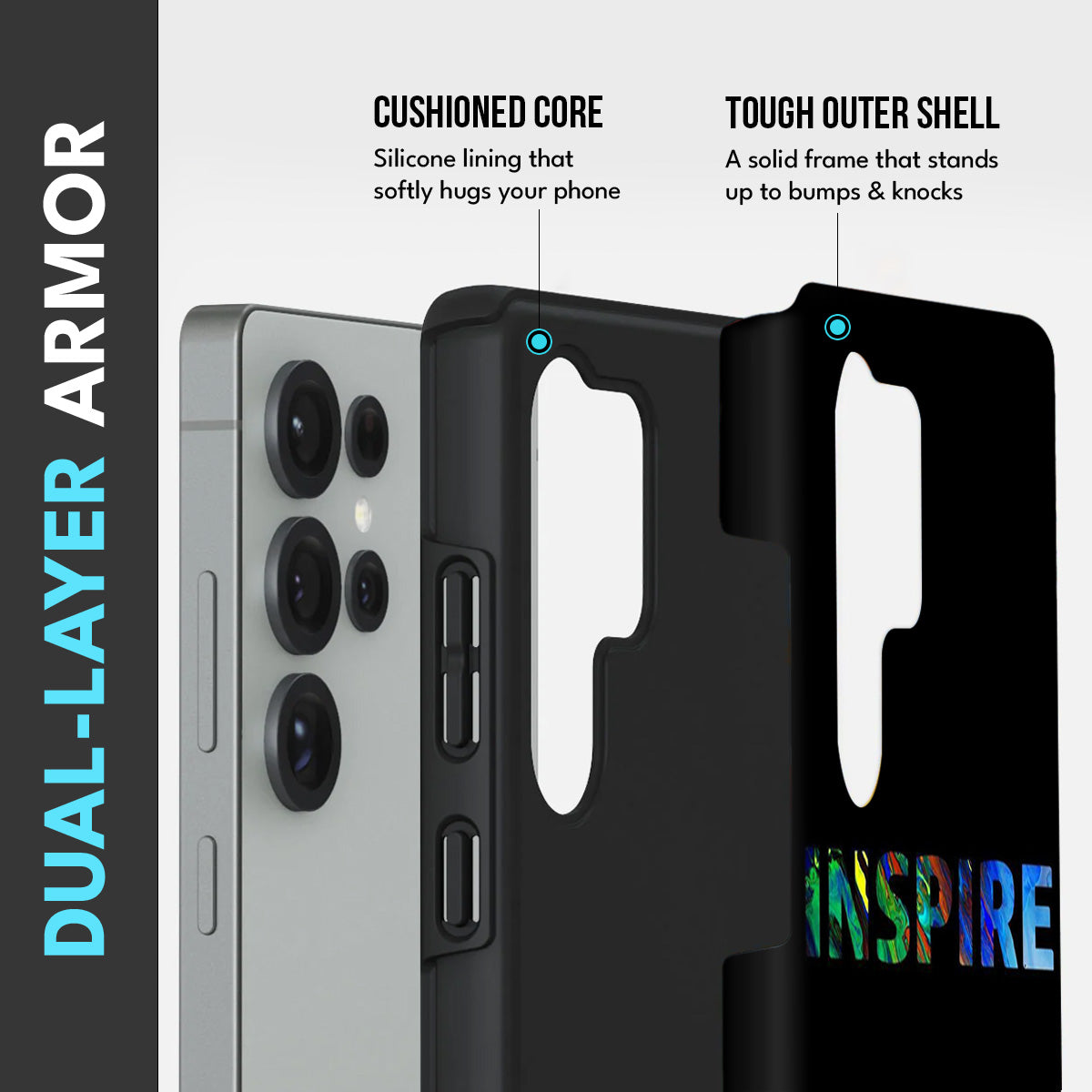 Keep motivation close and your goals even closer with the Stay Inspired Case. Designed with a bold, holographic “INSPIRE” graphic glowing against a sleek black background, this case is a daily reminder to push forward, dream big, and stay true to your vision.