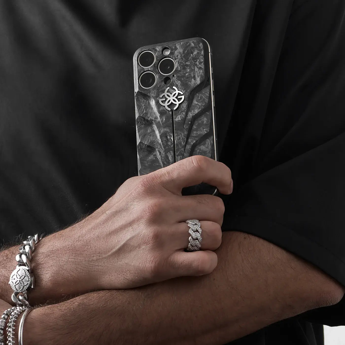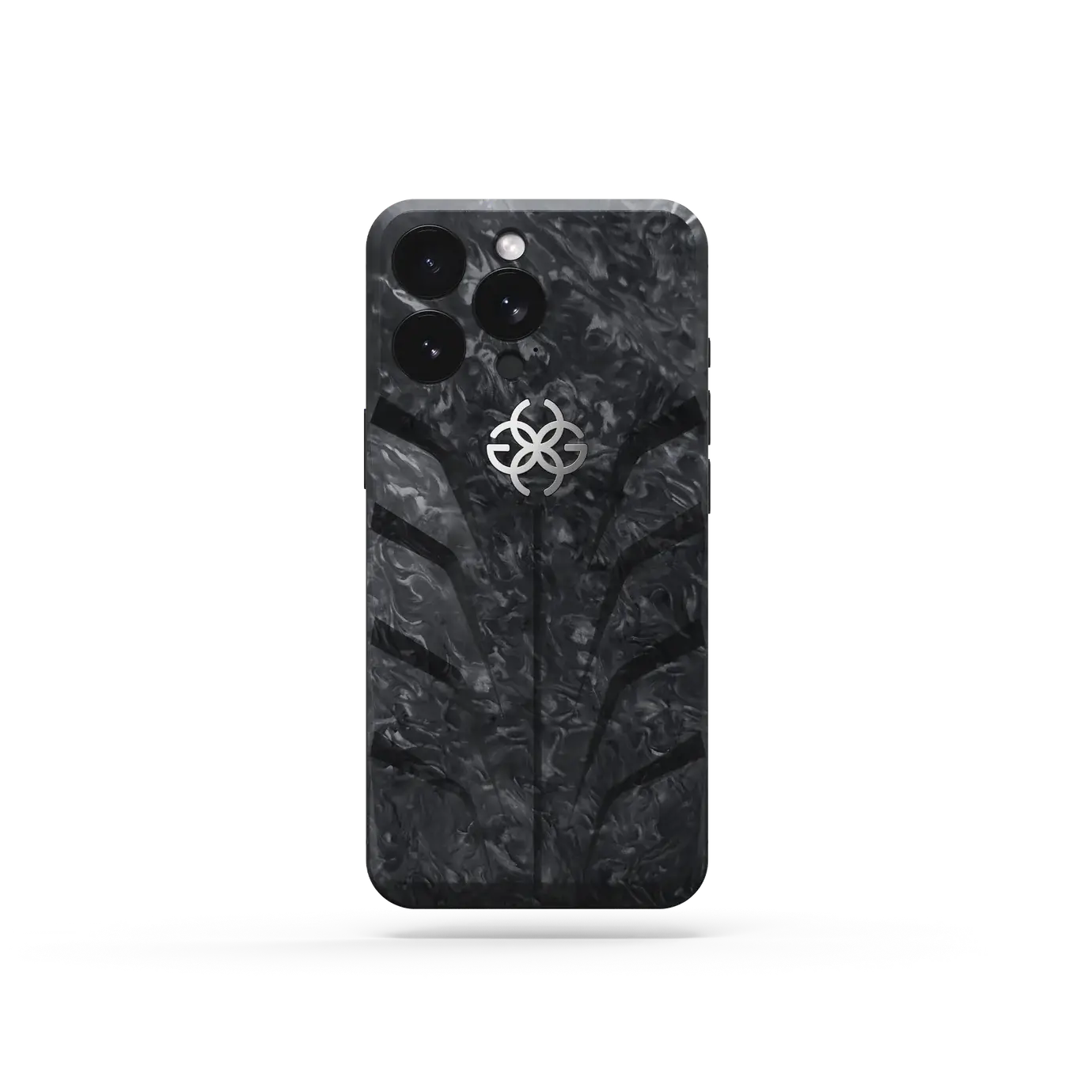 • A central metallic symbol adds a bold contrast, elevating the case’s visual appeal.