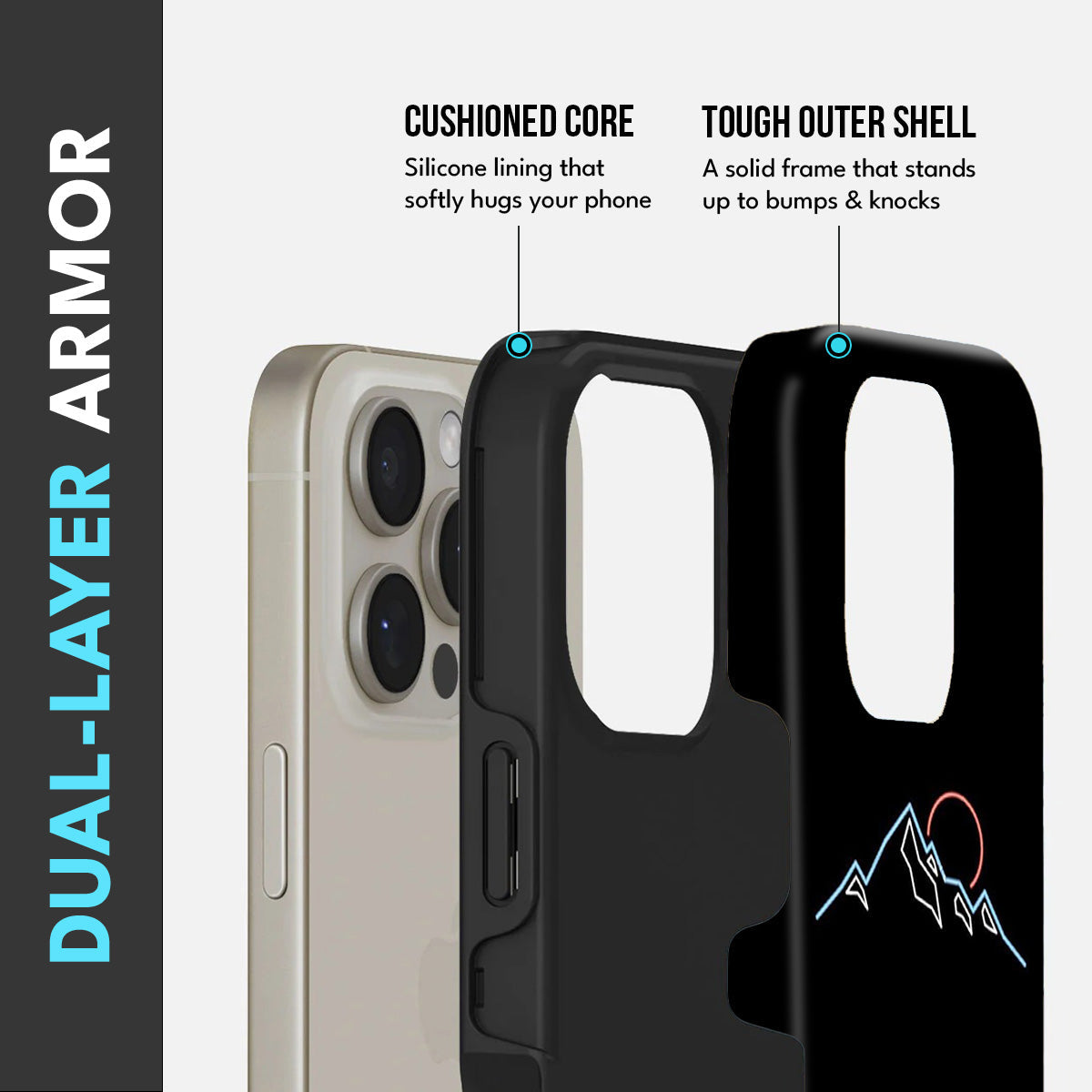 Find calm, clarity, and adventure in simplicity with the Sunrise Summit Case. Designed with a minimal yet striking line-art mountain range and a warm rising sun, this case captures the essence of new beginnings and endless horizons. The deep black background enhances the glowing mountain outline, giving your phone a sleek, modern, and artistic look.