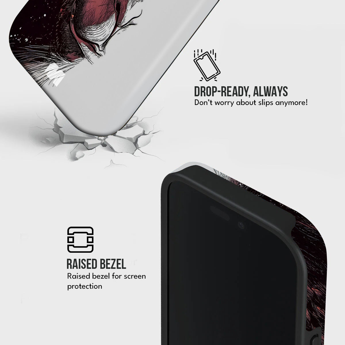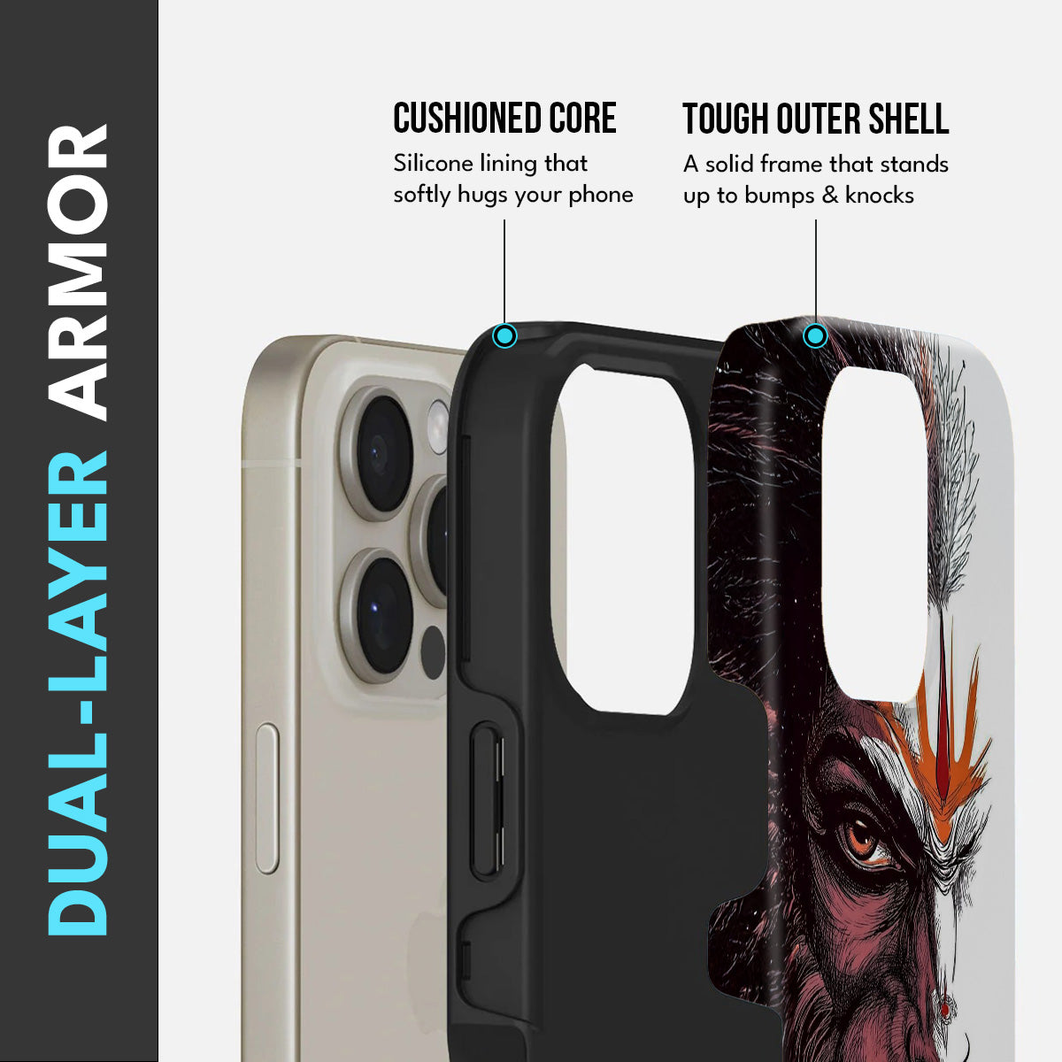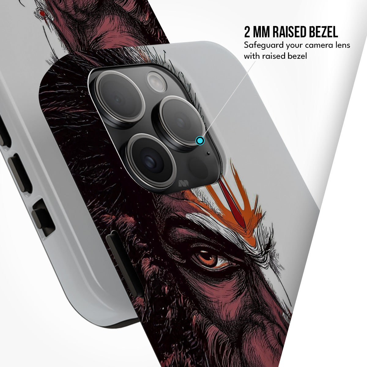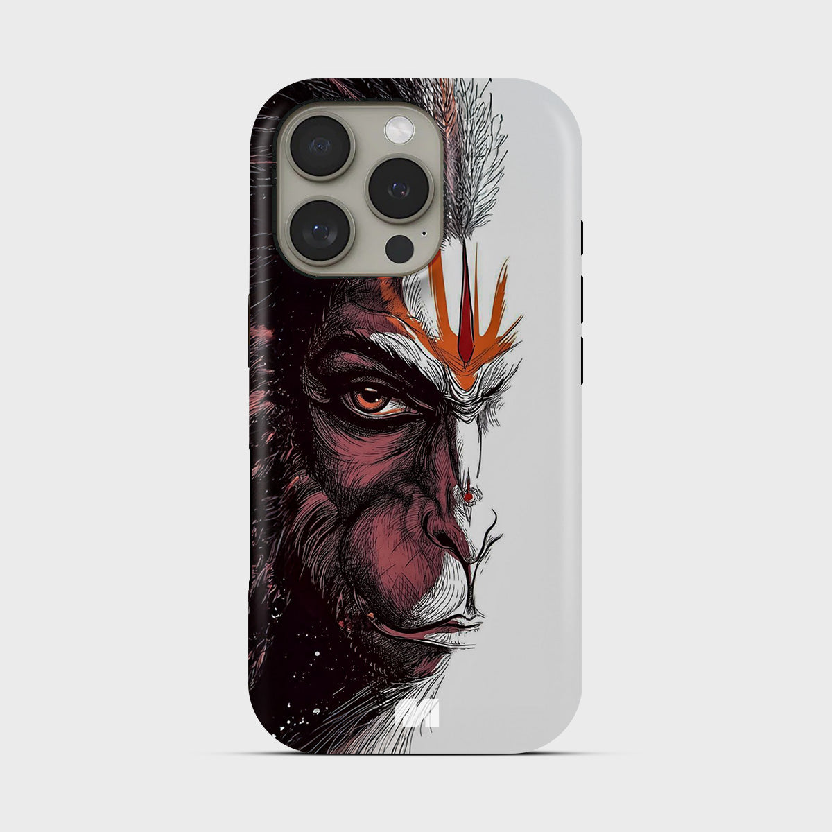 The Thunder Lord Case is a striking fusion of divine strength and bold artistry, designed for those who carry power with purpose. Featuring an intense half-face illustration of Lord Hanuman, the design highlights fierce expression, sacred tilak, and dynamic strokes that radiate unstoppable energy.