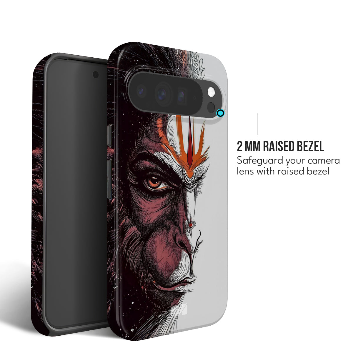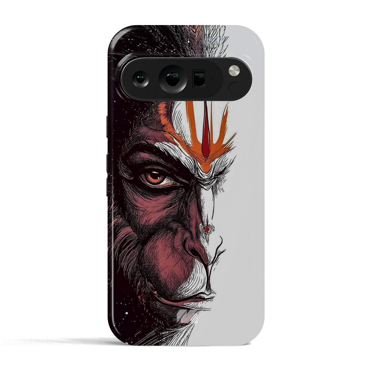 The Thunder Lord Case is a striking fusion of divine strength and bold artistry, designed for those who carry power with purpose. Featuring an intense half-face illustration of Lord Hanuman, the design highlights fierce expression, sacred tilak, and dynamic strokes that radiate unstoppable energy.