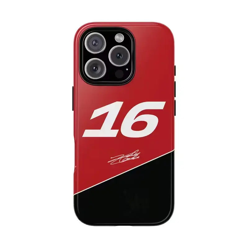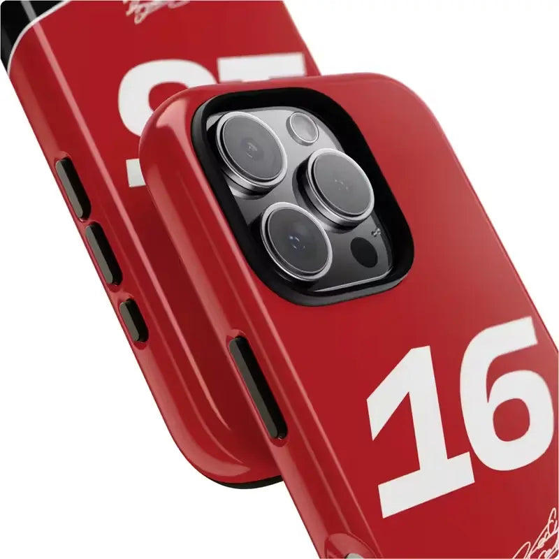 Turbo Shift Sixteen is built for fans who live for speed, precision, and pure racing adrenaline. Featuring the iconic 16 in bold white against a striking red-and-black split, this case captures the raw aggression and elegance of a true Grand Prix machine.